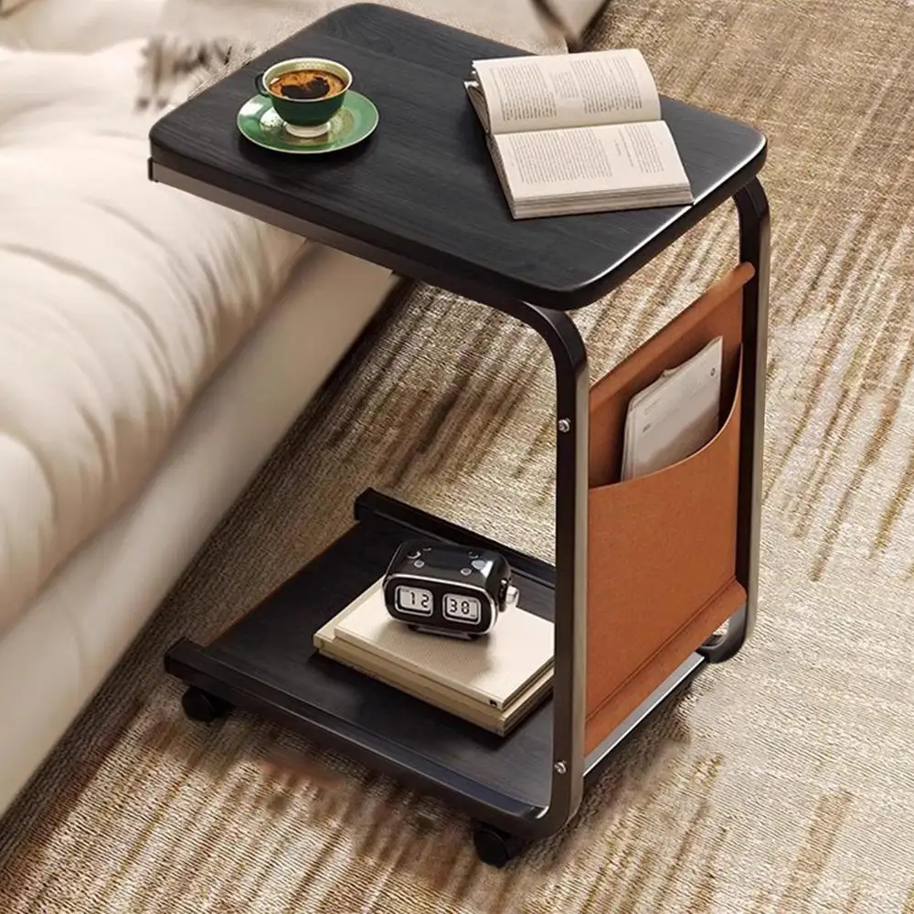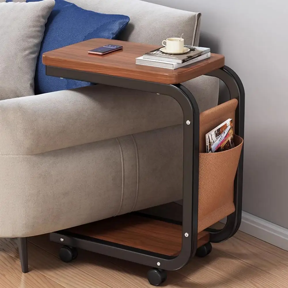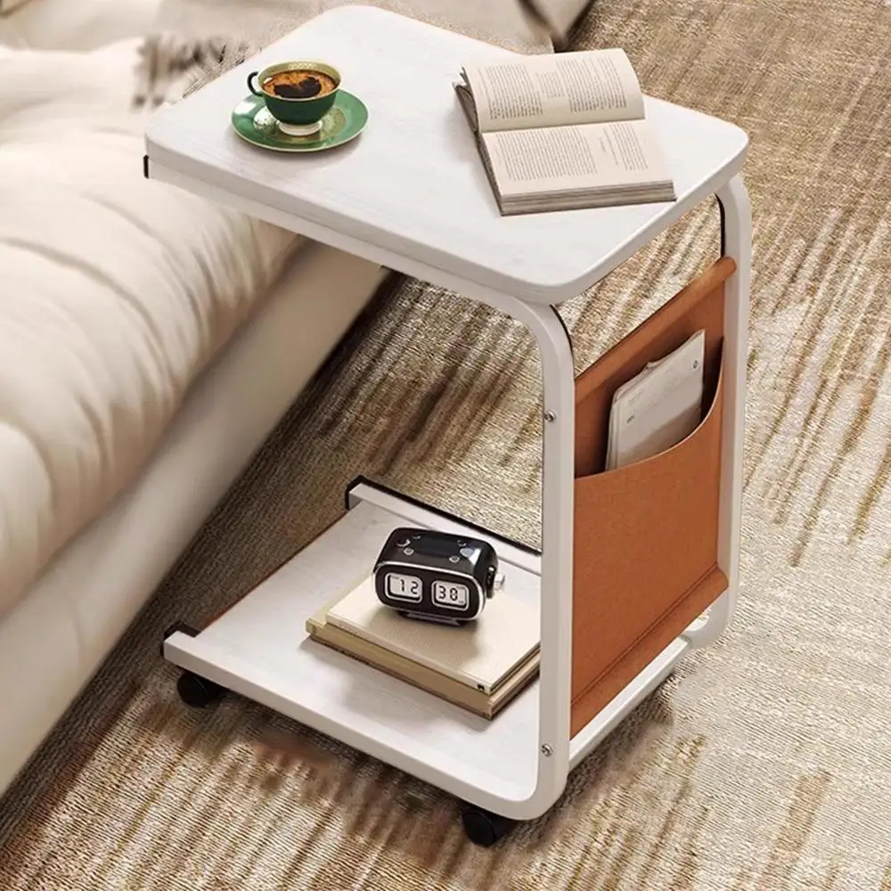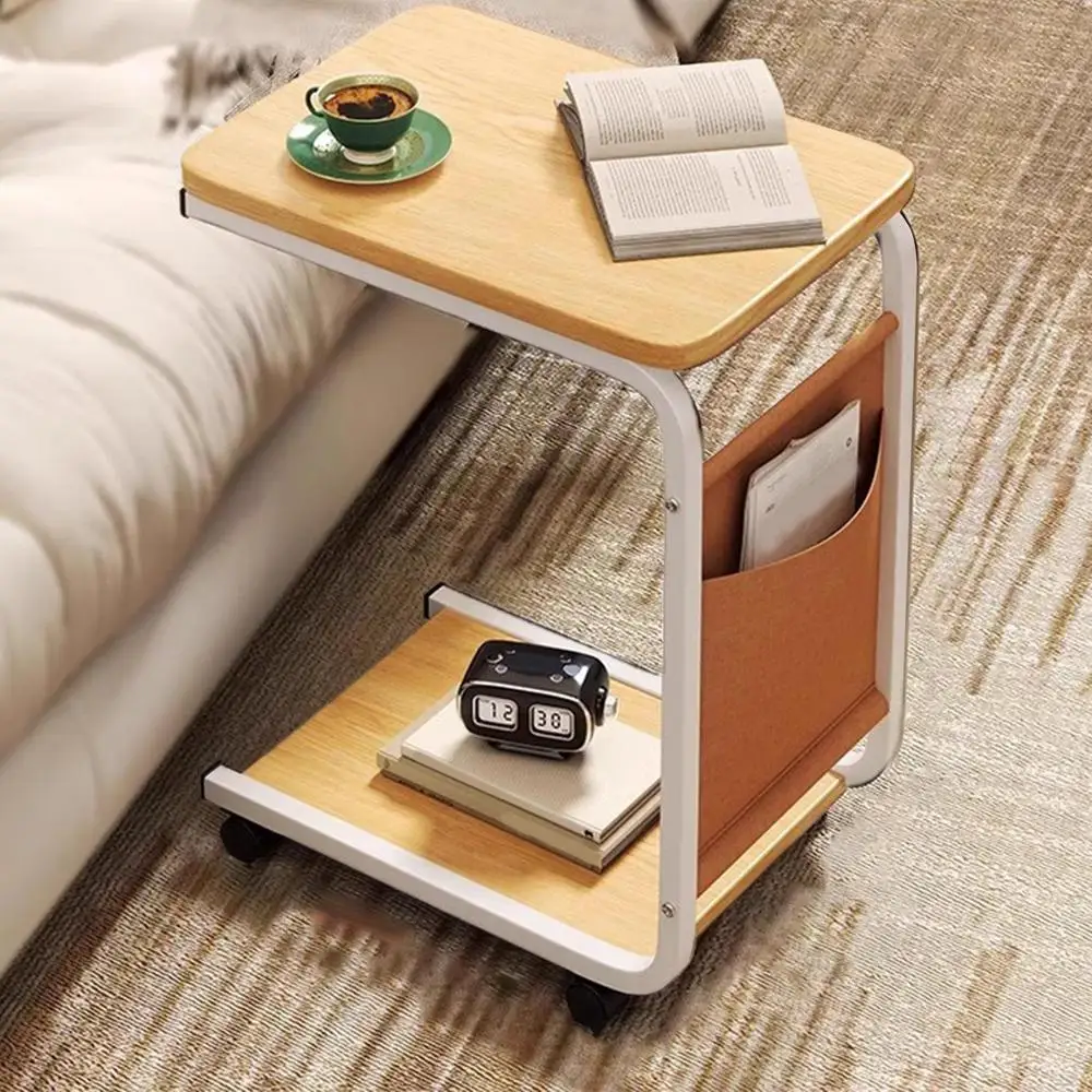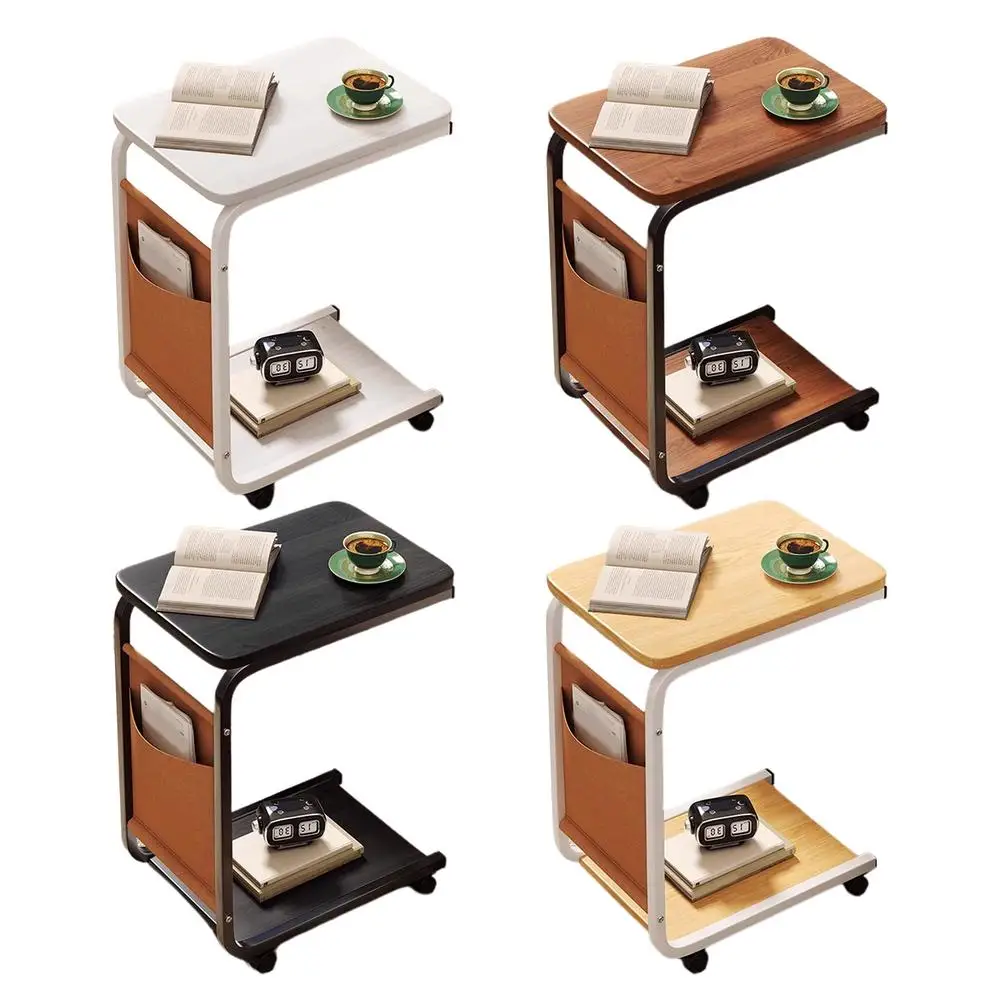 C Shaped End Table Small Side Table For Living Room Double Layer Movable Side Table For Sofas Living Rooms Bedside Areas