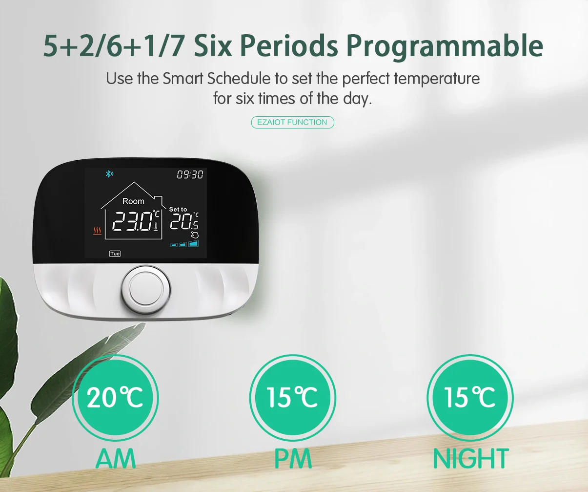 Use the Smart Schedule to set the perfect temperature for six times of the day.