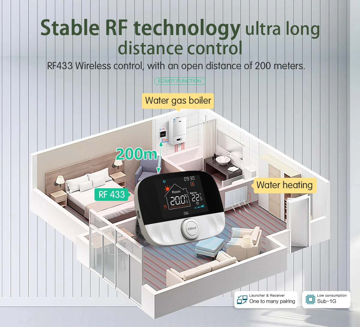 Designed to work in every home, the wireless thermostat keeps a balance of energy efficiency and home comfort.